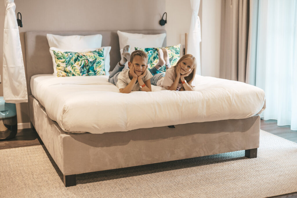 Pokoje w Mövenpick Balaland są jasne, przestronne i urządzone w eleganckim, ale przyjaznym stylu. Duże okna wpuszczają naturalne światło, a z wielu pokoi roztacza się widok na Balaton. Wnętrza łączą w sobie funkcjonalność z przytulnością – znajdziemy tu wygodne łóżka, dużo miejsca do przechowywania, a także kąciki, które ułatwiają rodzinny pobyt z dziećmi.
