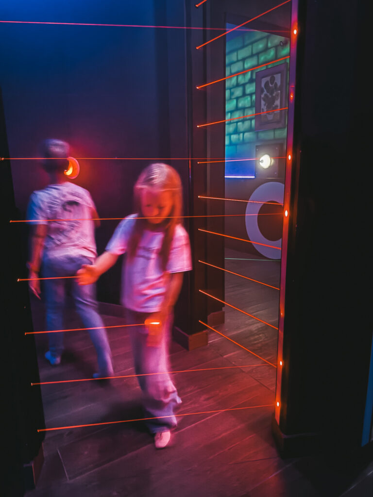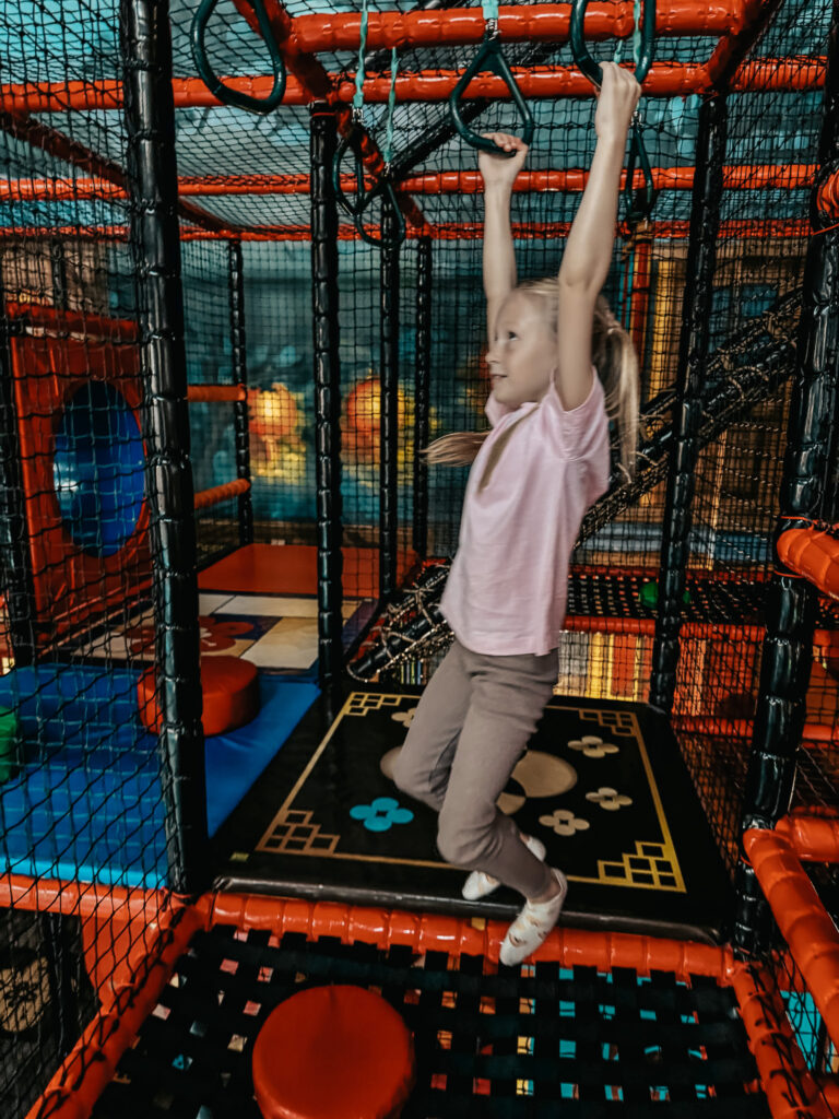 Konstrukcja jest tak duża, że sama biegałam z dziećmi i wspólnie się bawiliśmy – nie tylko one miały frajdę! Obawiałam się, czy starszy Igi znajdzie tu coś dla siebie, ale pochłonęło go to miejsce tak samo jak Kalinę, więc nie ma obaw o starsze dzieci. Starsze dzieci i młodzież znajdą dla siebie nowoczesne atrakcje: strefę VR, laser room czy konsolowe gry wideo.