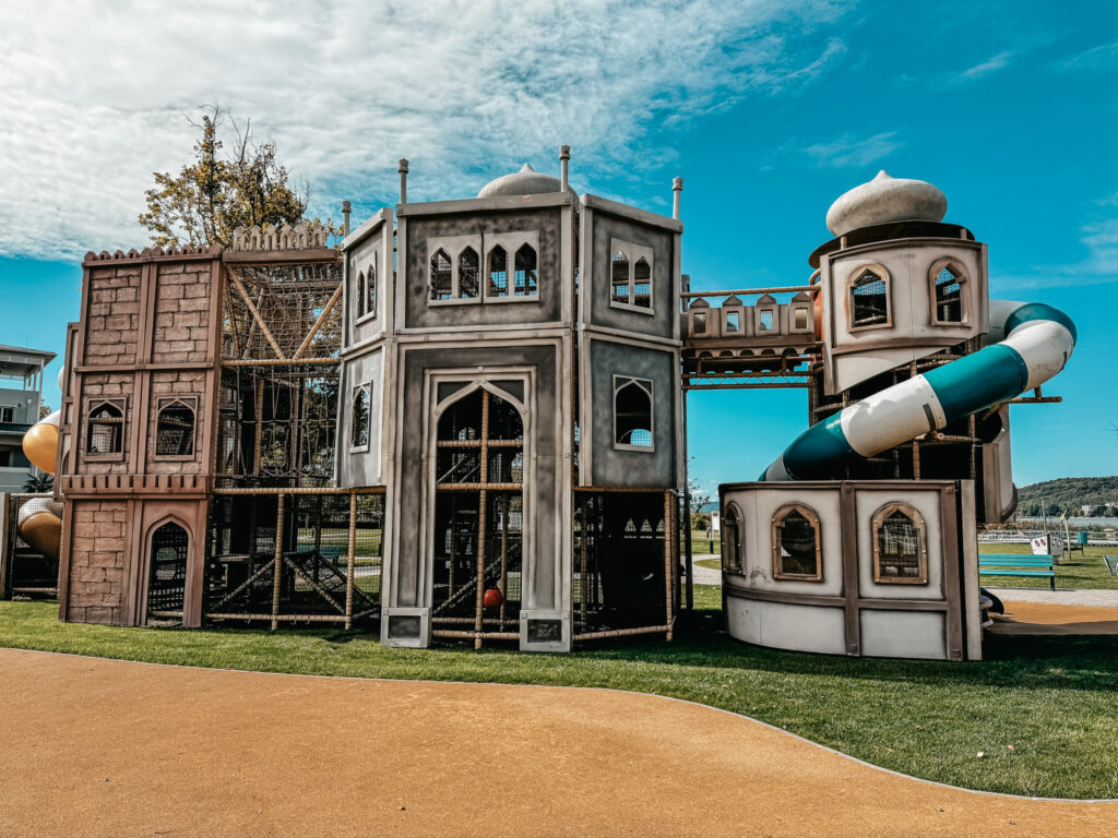Największym atutem Mövenpick Balaland jest Family Park – ogromny kompleks atrakcji o powierzchni ponad 10 000 m², dostępny przez cały rok. Składa się on z części suchej i wodnej, a jego motywem przewodnim jest podróż „W 80 dni dookoła świata”. Na końcu wpisu znajdziesz darmowe kolorowanki z podróży Fooga oraz karty pracy w temacie podróży.