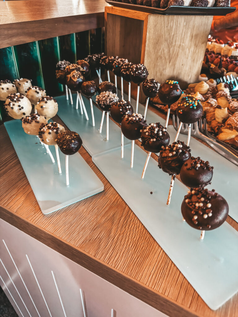 W Mövenpick Balaland codziennie o 15:00 czeka na gości mała przyjemność – Chocolate Hour. Oprócz deserów, takich jak ciasta czy praliny, zawsze dostępne były świeże owoce, które można było maczać w płynnej, aksamitnej czekoladzie. To właśnie one stały się naszym ulubionym wyborem – lekka, zdrowsza alternatywa, idealna na popołudniową przekąskę.