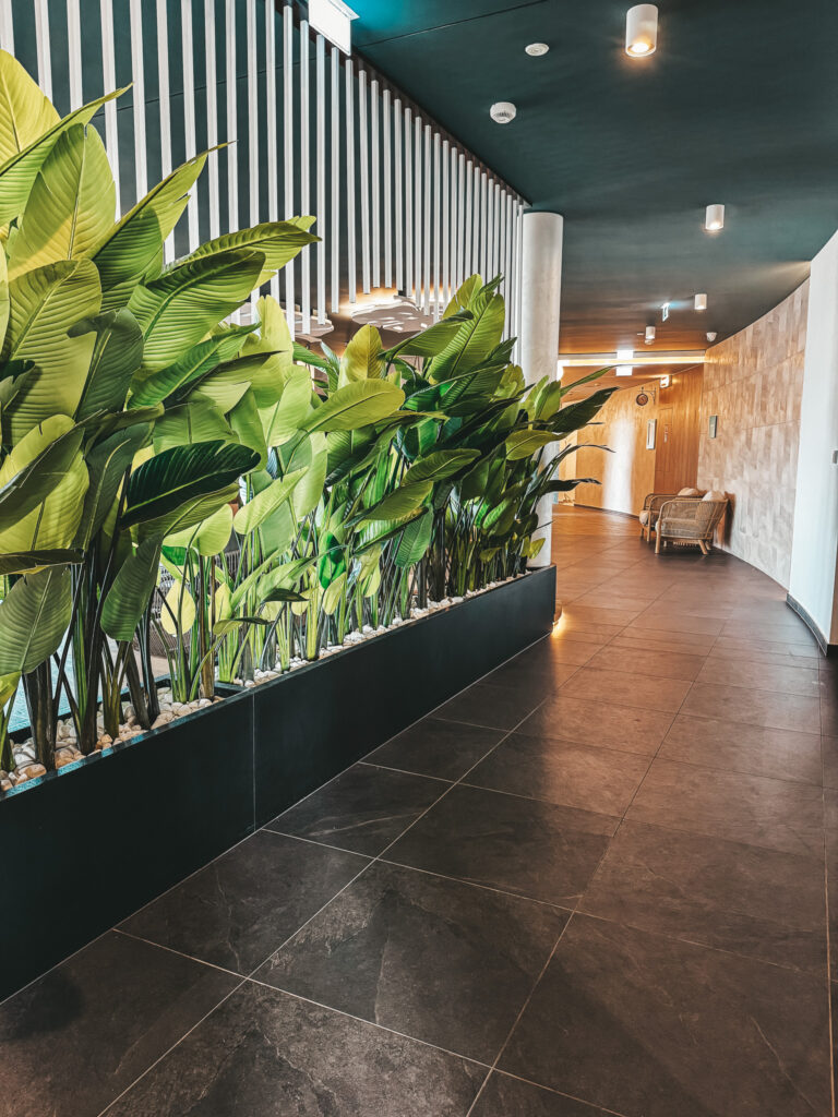 Wchodząc do środka, gości wita przestronne lobby, pełne światła i nowoczesnych detali. Obsługa jest niezwykle uprzejma i pomocna – od recepcji po restauracje i strefy animacyjne. Od razu czuć, że to miejsce stworzone z myślą o rodzinach i że każdy szczegół został zaplanowany tak, by goście czuli się komfortowo.