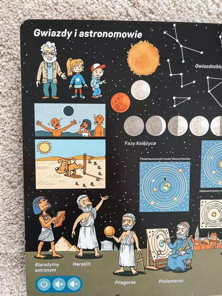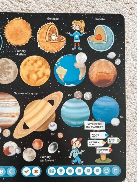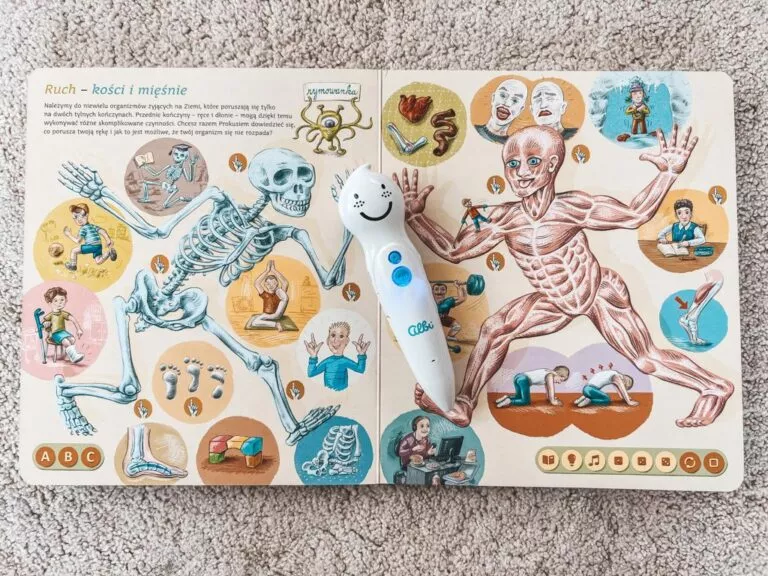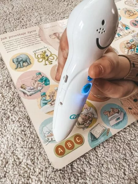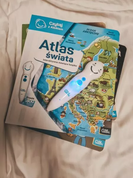 Na początek wystarczy Wam zestaw startowy, w którym znajdziecie mówiące pióro wraz z ładowarką i końcówką USB do podłączenia do komputera, podstawkę oraz książką. My swoją przygodę rozpoczęliśmy z Atlasem Świata. Potem dokupiliśmy książki Wszechświat oraz Człowiek i Przyroda. O kolejne numery możecie poprosić swoich bliskich, którzy często pytają co mają kupić Waszym dzieciom na prezent.