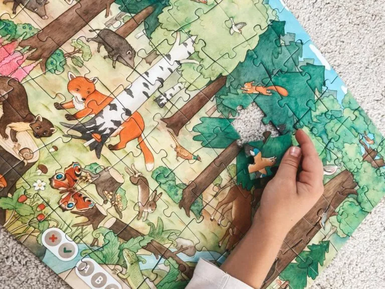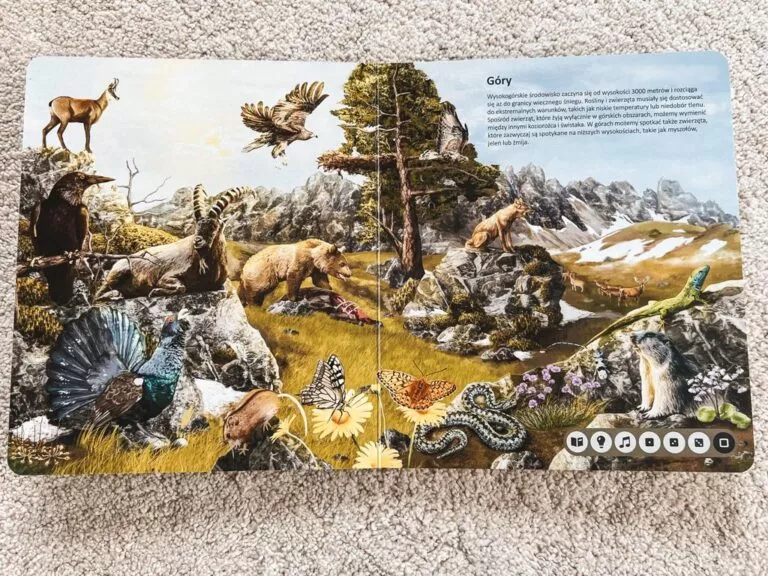 Oprócz książek, jakiś czas temu, pojawiła się nowość w ofercie producenta-puzzle. My mamy pozycję Las, która przybliża dzieciom wiele ciekawostek dotyczących zwierząt leśnych i roślin. Znajdziemy tam również quizy i odgłosy ptaków. Te puzzle to prawie 250 dźwięków i tekstów. Dużo prawda? 🙂