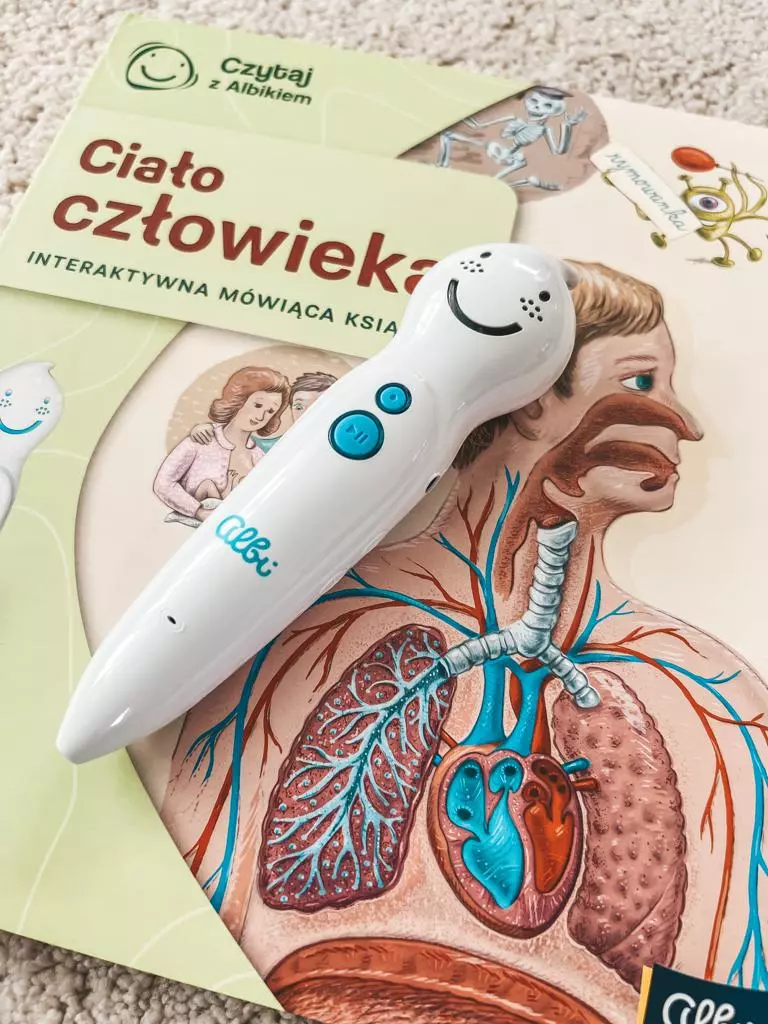 Albik to długopis, który opowiada dzieciom historie zawarte w książce, uczy nazewnictwa, nowych pojęć i ćwiczy spostrzegawczości. Świetnym elementem jego zawartości są quizy (3 stopnie trudności), które moje dzieci uwielbiają. Warto też zwrócić uwagę na ilustrację. Są one estetyczne i przyjazne w odbiorze. Doskonale wpisują się w nurt pedagogiki Montessori.