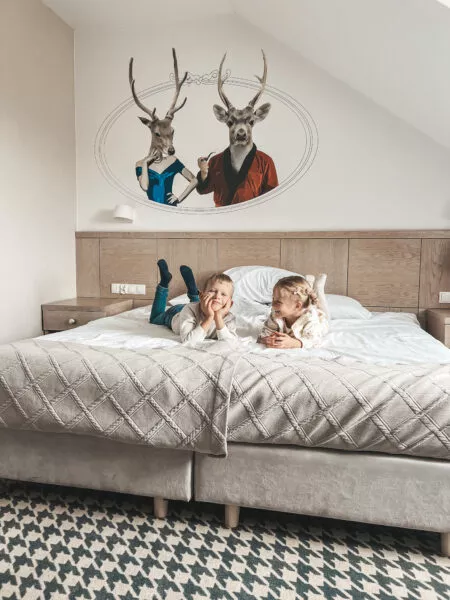 Podczas pobytu w hotelu możecie wybrać pokój w części pałacowej lub części SPA. W zabytkowej przestrzeni hotelu, otoczonej pięknem Borów Tucholskich, czeka na gości połączenie klasycznego pałacowego stylu z nowoczesnym designem. Te pokoje emanują wyjątkowym urokiem i historią z przepięknym widokiem na park. Warto zaznaczyć, że ze względu na zabytkowy charakter części pałacowej, budynek nie posiada windy. Jeżeli wybieracie się z maluszkiem wybierzcie pokój w nowej części.