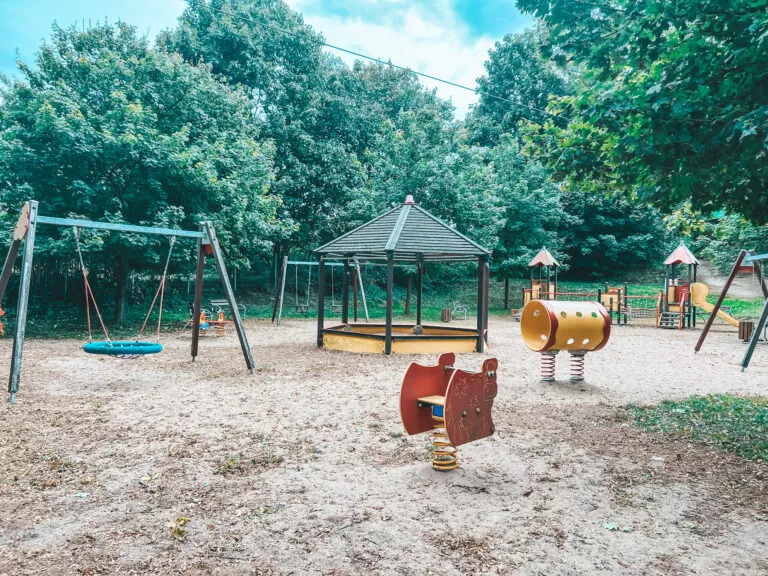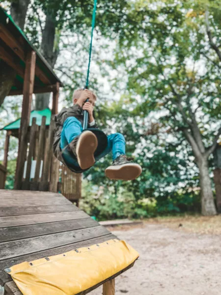 Po przyjeździe, od razu wyruszyliśmy do mini zoo oraz na plac zabaw, znajdujący się na skraju pałacowego parku. Jest to doskonałe usytuowanie, aby nie zakłócać spokoju innym gościom. Nasze dzieci szalały z radości na parku linowym, huśtawkach i drabinkach. Ogromny park to miejsce, gdzie mogą wybiegać się do woli w otoczeniu przepięknej przyrody.
