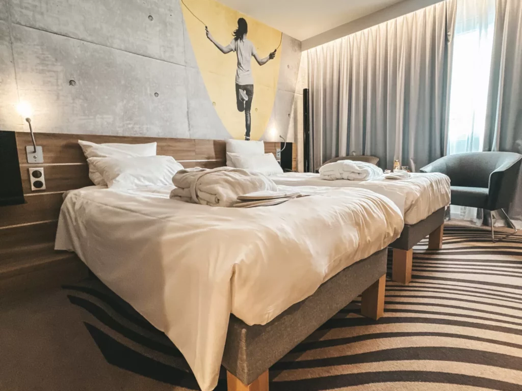 Dla dzieci na terenie hotelu znajdziecie również specjalne atrakcje – kącik zabaw oraz interaktywne gry, które umilają czas, gdy rodzice chcą odpocząć po intensywnym dniu zwiedzania. Hotel oferuje przestrzenie specjalnie zaprojektowanych dla dzieci. Strefa Playzone, wyposażona w piłkarzyki i stół do ping ponga, jest miejscem, gdzie mali goście mogą aktywnie spędzać czas. To przestrzeń stworzona z myślą o zabawie i ruchu, która z pewnością przypadnie do gustu dzieciom pełnym energii.