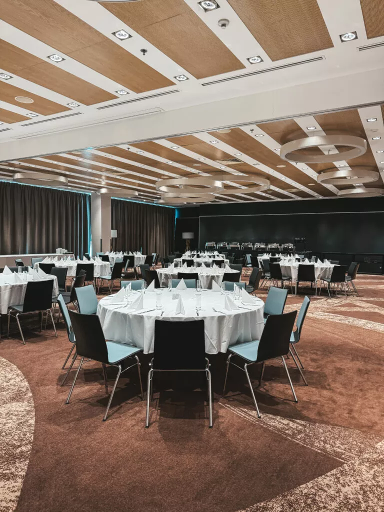 Hotel posiada nowoczesne i przestronne sale konferencyjne, które mogą pomieścić do 900 osób. Wyposażone są w nowoczesny sprzęt multimedialny oraz zapewniają elastyczność ustawienia przestrzeni w zależności od potrzeb wydarzenia. To idealne rozwiązanie zarówno na duże konferencje, jak i bardziej kameralne spotkania. Co więcej, lokalizacja hotelu w centrum miasta gwarantuje łatwy dojazd dla uczestników, a widoki na panoramę Warszawy dodają elegancji każdemu spotkaniu.