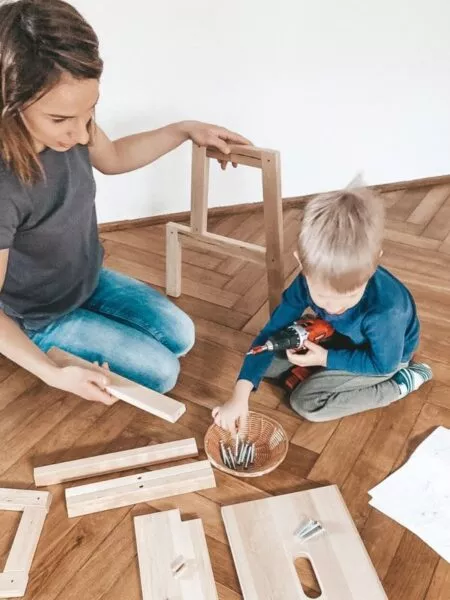 Składamy stołek BEKVAM według instrukcji dołączonej do produktu. Ikea ułatwia Wam pracę, wszystkie elementy dołączone są do zestawu takie jak imbus czy klucz. Ja do składania zaangażowałam dzieci, które z chęcią dołączyły do stworzenia Kitchen Helpera. Posiłkowaliśmy się też wkrętarką, aby ułatwić sobie pracę.