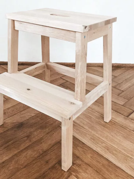 Do stworzenia Kitchen Helper’a (pomocnika kuchennego) potrzebujecie dwóch mebelków z IKEA – stołka, taboretu BEKVAM oraz krzesełka ODDVAR. Oprócz nich potrzebne Wam będą 4 wkręty do drewna, wkrętarka oraz farba do zabezpieczenia.