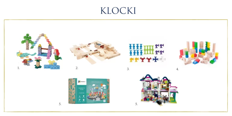 Możemy też postawić na bardziej “przestrzenne” rozwiązania i pokusić się o zakup klocków. W końcu, które dziecko ich nie lubi? Maluchy często spędzają długie godziny na tworzeniu różnego rodzaju budowli. Dobrej jakości klocki o przemyślanej formie potrafią świetnie wpływać na wyobraźnię dziecka i pozwalają mu rozwijać zdolności manualne. W Montessori jest to zabawka, która zdobyła duże uznanie. Wśród naszych rekomendacji znajdziecie zarówno klocki klasyczne, jak i konstrukcyjne – dla dzieci w każdym wieku, niezależnie od ich preferencji.