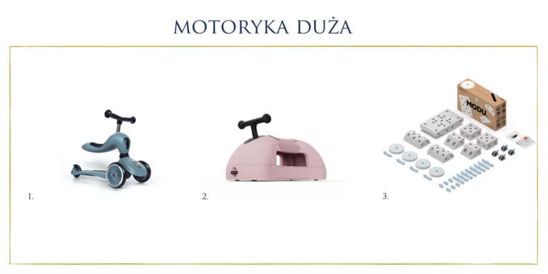 Warto zwrócić uwagę na to, aby elementy wchodzące w skład konstrukcji placu zabaw były odpowiednio skonstruowane. Całość musi być stabilna, wygodna w użyciu i zabezpieczona tak, aby dziecko mogło wykonywać nawet najbardziej szalone akrobacje bez obaw o swoje zdrowie. Przy rozwoju dużej motoryki polecamy również hulajnogę i jeździk 2w1 a dla nieco młodszych maluchów pchacz 3w1 oraz klocki konstrukcyjne z których wyczarujecie niezliczoną ilość pojazdów.