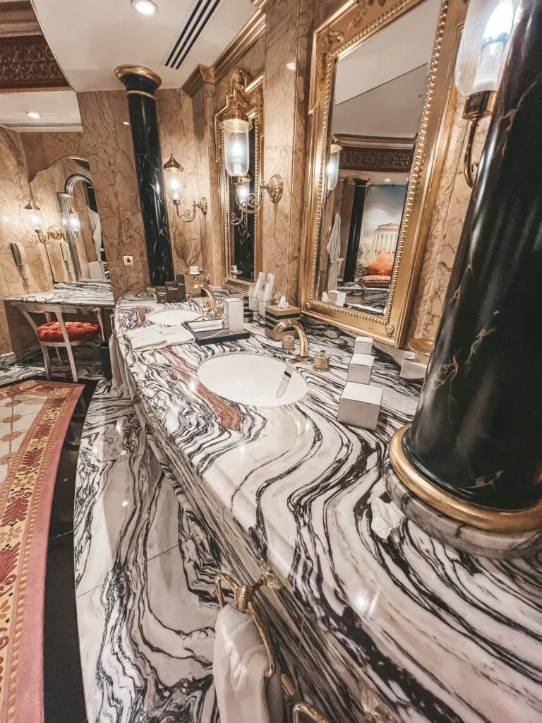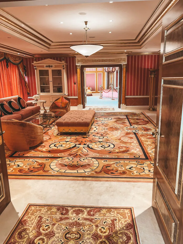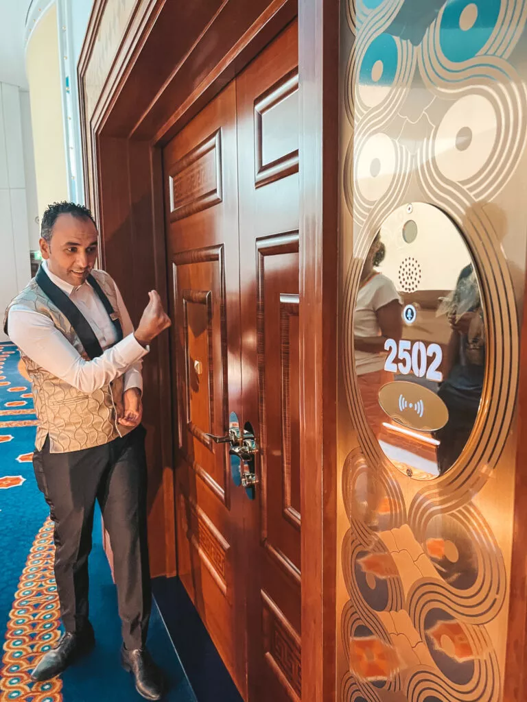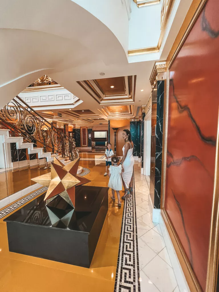 Hotel oferuje kilka pakietów dla zwiedzających. Możecie wykupić samą wycieczkę, podczas której towarzyszyć będzie Wam kamerdyner. Trwa ona ok 90 minut i odbywa się w ok 12-osobowych grupach, lub rozszerzyć ją o usługi gastronomiczne. Do wyboru macie cappuccino z 24 -karatowym złotem, pizzę margaritę, sandwicha lub podwieczorek z napojami. Zwiedzanie odbywa się codziennie od 9:30 do 20:30 a ceny zaczynają się od 249 ADE.