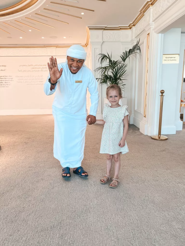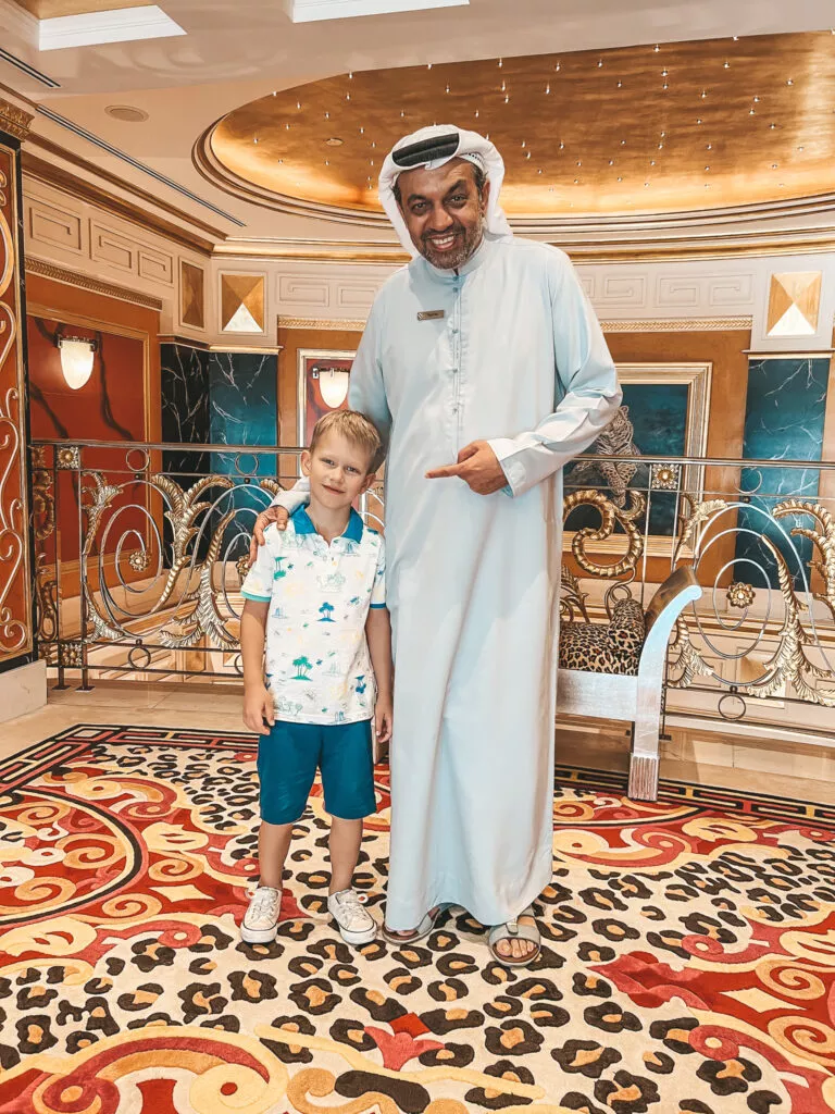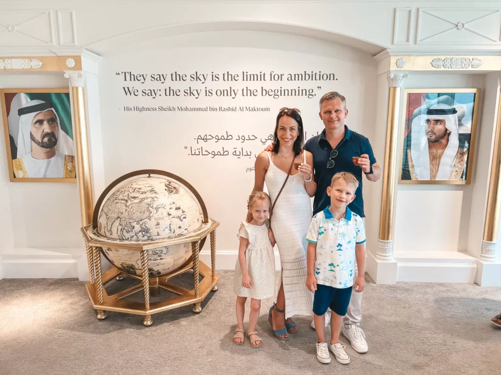 Oprócz zwiedzania apartamentu dowiedzieliśmy się wielu ciekawostek o tym miejscu i jego bogatej historii. Mogliśmy odwiedzić muzeum Burj Al Arab, napić się tureckiej kawy i zjeść przepyszne daktyle.