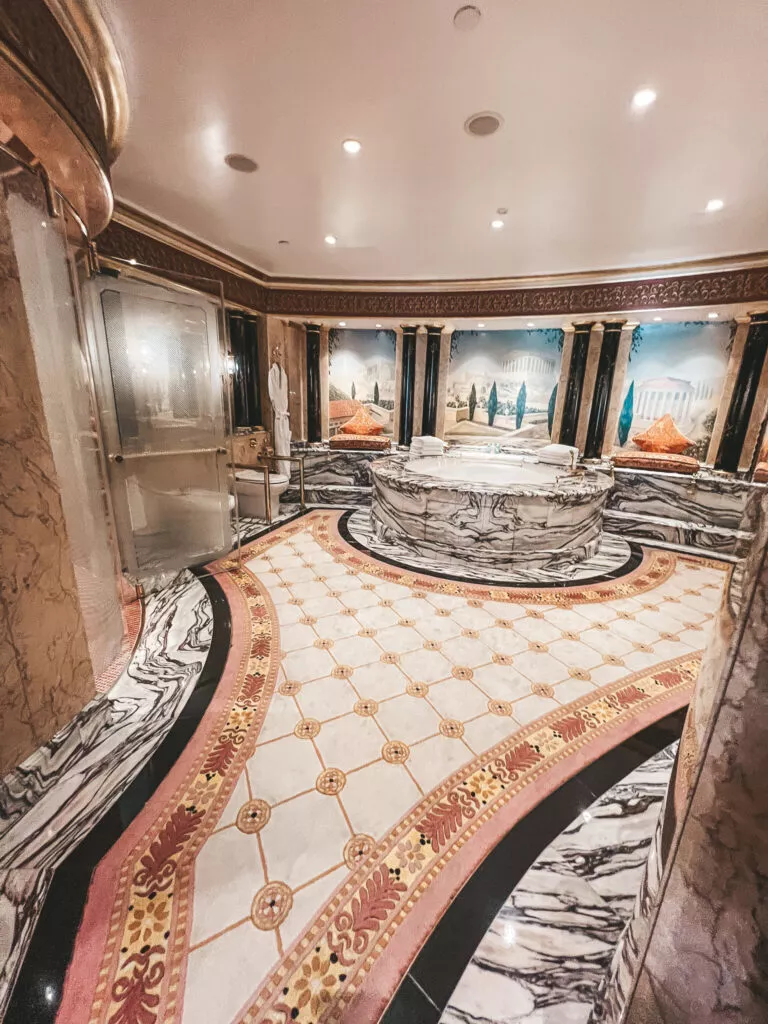 W obiekcie znajdziemy także 6 restauracji, platformę widokową, 4 baseny w tym 2 do nurkowania, ogromne akwarium z żywą rafą koralową, sauny, 18 pokoi spa z hydroterapią i masażami, studio fitness, solarium i sauny, muzeum i bibliotekę. Każde piętro ma swoją dodatkową recepcję.