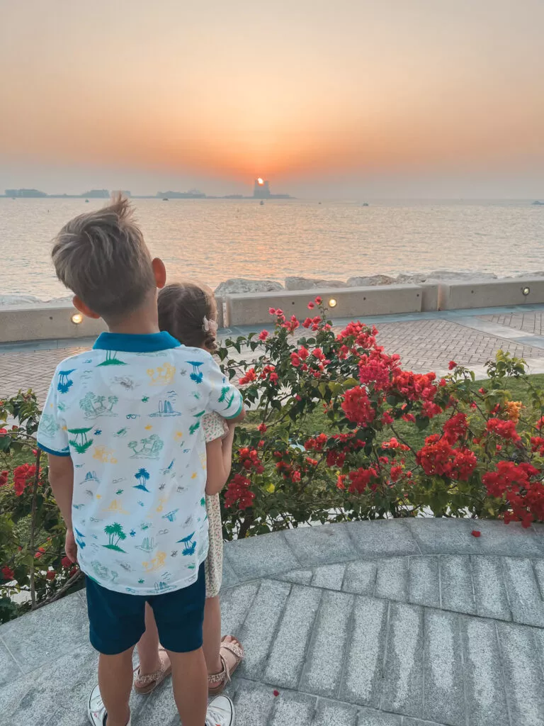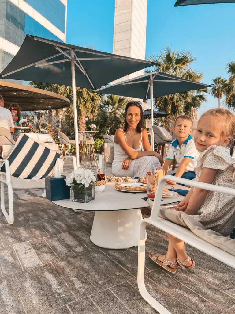 Na koniec spełniliśmy marzenie Ignaśka, jakim było spróbowanie tutaj pizzy. My załapaliśmy się na piękny zachód słońca i cudowny śpiew ptaków. Co myślicie o takim przepychu? Dla mnie kosmos i zastanawiam się jak dużo trzeba mieć pieniędzy, żeby móc pozwolić sobie na urlop w tym hotelu. Niemniej jednak fajnie było zobaczyć symbol Dubaju od środka.